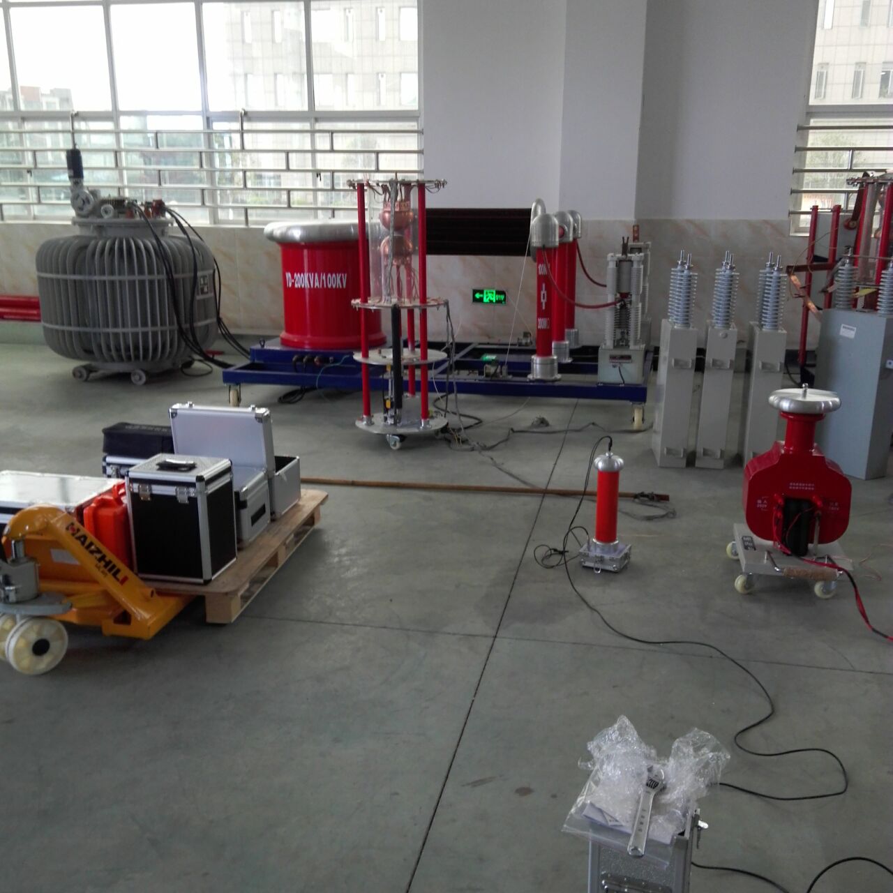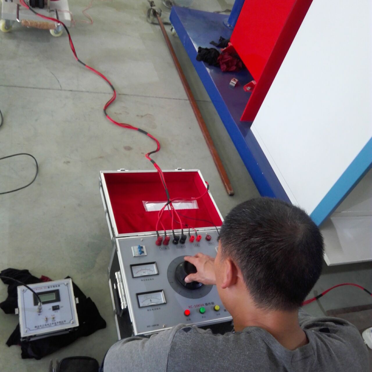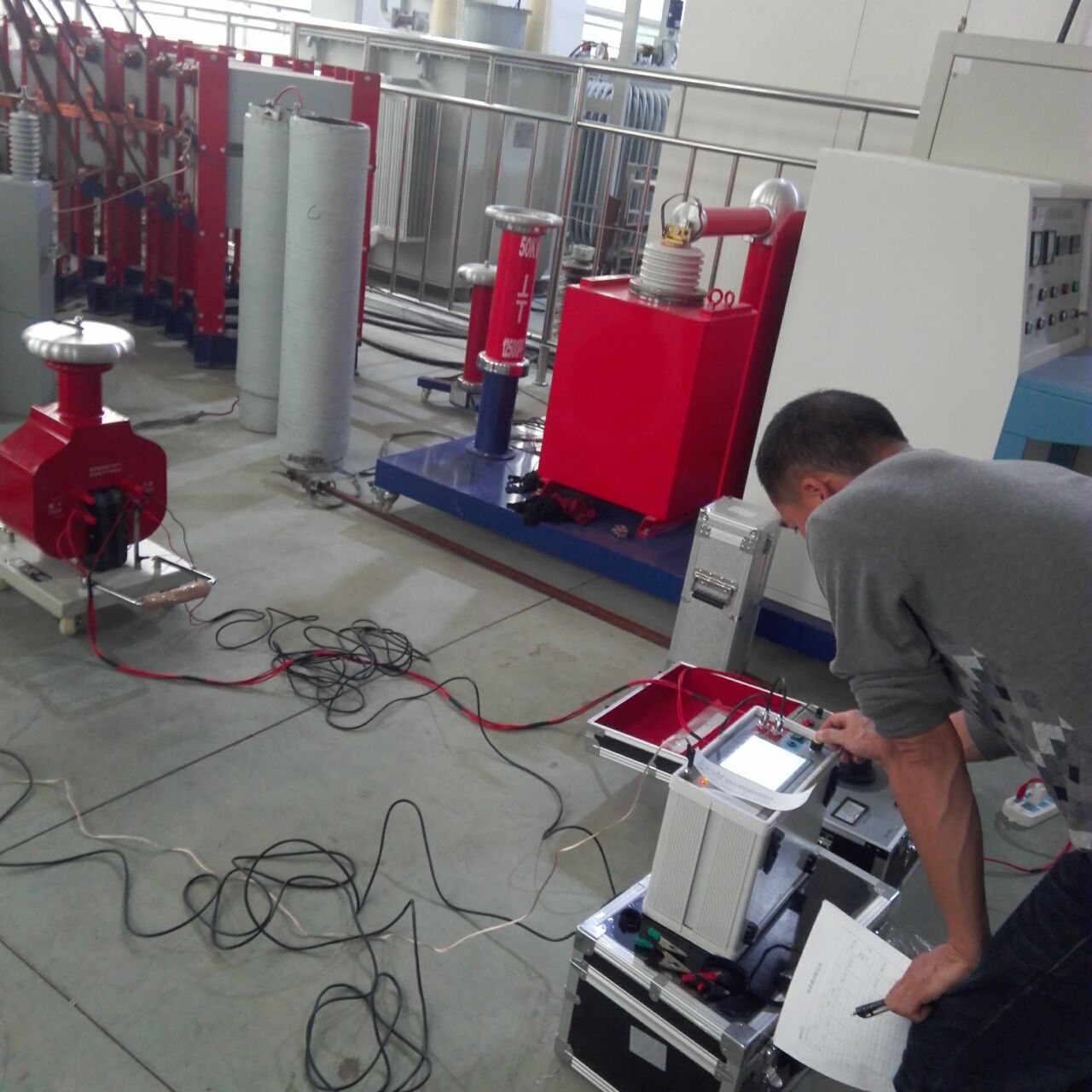 李工首先對(duì)設(shè)備的原理和功能進(jìn)行了全面而細(xì)致的講解。特別是我公司生產(chǎn)的干式試驗(yàn)變壓器,利用先進(jìn)的生產(chǎn)設(shè)備,采用線圈繞組環(huán)氧真空澆注及CD型鐵芯的新工藝,和同類產(chǎn)品油浸式變壓器相比,明顯地降低重量,減少體積,在質(zhì)量上提高了絕緣強(qiáng)度和抗?jié)癯潭?,并有效地削弱了漏磁而大大加?qiáng)了變壓器承受試驗(yàn)短路電流的沖擊能力。