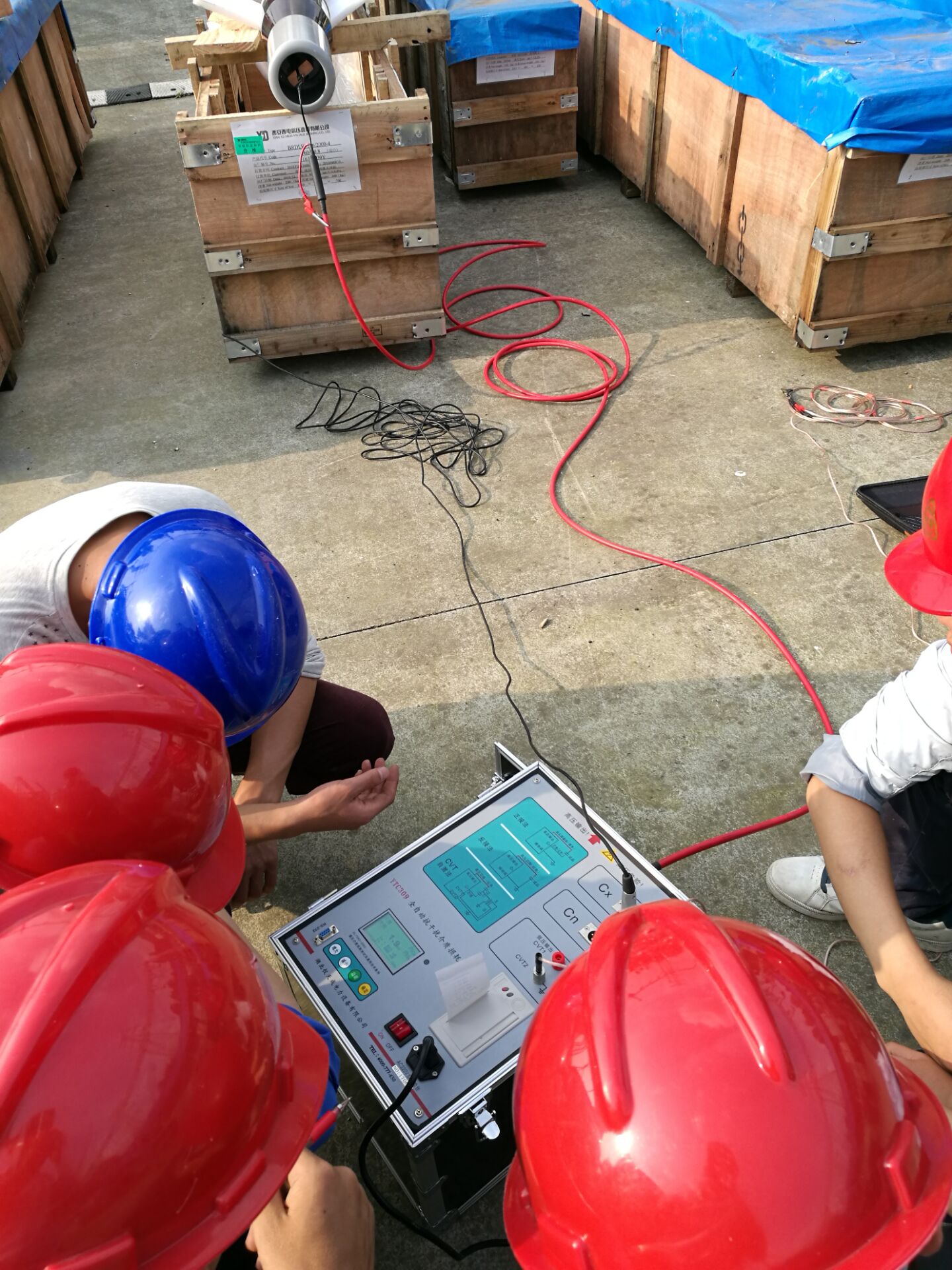 在現(xiàn)場,李工首先對設備進行了簡單的檢查看看設備是否有損壞,之后開始了對設備的培訓。此次培訓的設備和內容很多。李工對各項設備的使用,接線方法進行了實地操作和詳細的講解,并對客戶提出疑問的地方,現(xiàn)場給予細心,準確的解答??蛻衾斫饽芰Ρ容^強,在設備培訓過程中有的同事就已經(jīng)基本掌握了設備的操作,隨后,又與客戶一起到現(xiàn)場對被試品進行了試驗。