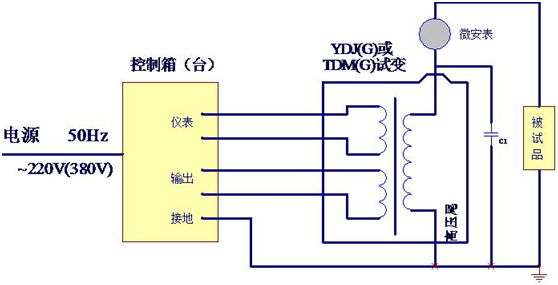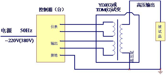 油浸式試驗(yàn)變壓器交流(工頻)耐壓試驗(yàn)接線(xiàn)示意圖