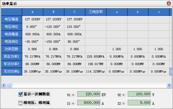 1、顯示一次側(cè)數(shù)值:根據(jù)輸入的高壓側(cè)電壓U1、高壓側(cè)電流I1、低壓側(cè)電壓U2、低壓側(cè)電流I2的數(shù)值,在進(jìn)行校表的時(shí)候,軟件自動(dòng)把電壓、電流、功率換算成一次側(cè)的電壓、電流、功率,便于與表計(jì)相對(duì)照。