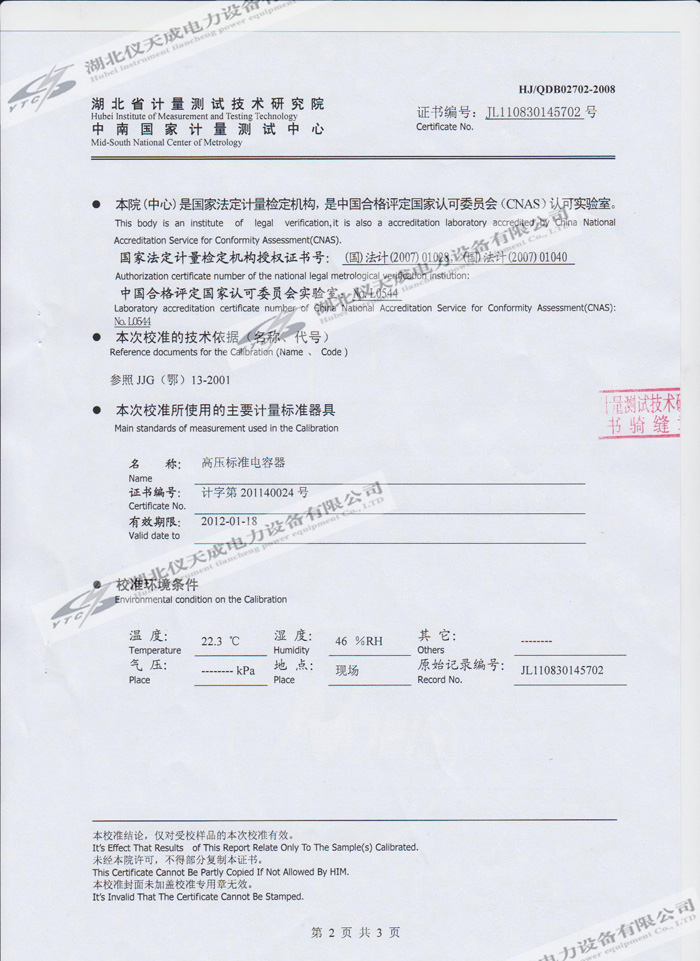 轉(zhuǎn)載:"YTC850-810kVA/270kV/45kV變頻串聯(lián)諧振試驗(yàn)裝置的資質(zhì)證書(shū)" 請(qǐng)注明來(lái)源于儀天成電力。 更多技術(shù)問(wèn)題請(qǐng)致電儀天成電力客戶服務(wù):027-87876585,技術(shù)部專線:027-87876585,在線客服: